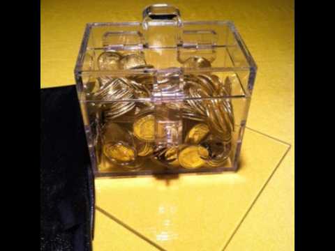 This light and heavy box will lift your audience to laugh and be amazed. The Magic Box is a beautiful clear plexiglass box with a brass lock. It is filled with dozens of gold coins. The box rests on an 8" X 10" clear plexiglass tray. When the box is on the tray and covered with a cloth the box becomes impossible to lift off the tray. This amazing effect becomes a memory maker when used with Barry's story of the Selfish Sultan and the Penniless Peasant. Comes with print instructions.